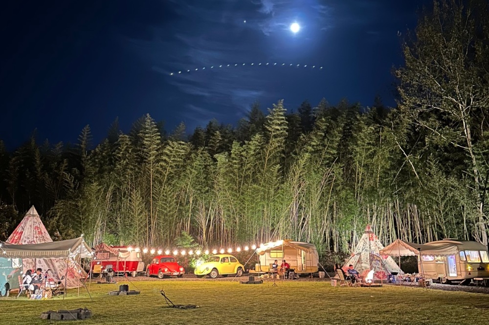 더없이 감성적이고 낭만적인 공간 밤부사운드캠핑장은 경북 경주시 천북면에 자리 잡고 있다. 이곳에 발을 들이면 어느 곳을 둘러봐도 감성 그 자체라는 사실을 깨닫는다. 낭만적인 캠핑 공간을 연출한 커플존에는 밤부화이트, 밤부레드, 밤부 옐로우로 구분된 카라반 3대가 마련되어 있다. 이 밖에 현대식 패밀리 캠핑카 2대, 빈티지 패밀리 카라반 6대, 글램핑 2개 동도 운영 중이다. 캠핑장 이용객에게는 브런치 2인, 음료 4잔 쿠폰을 무료로 제공한다. 카페를 비롯해 수영장, 마트, 포토존 등 부대시설도 알차다. 주변에 보문관광단지가 있다.