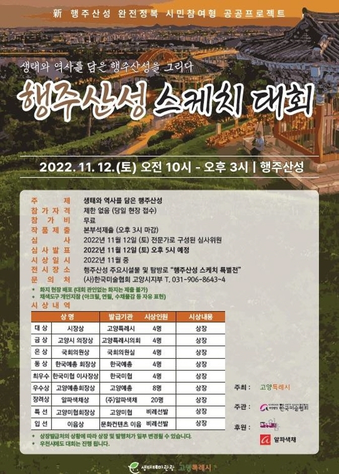 행주산성 스케치 대회에서 입상한 수장작들은 11월부터 행주산성 특별전시로 재탄생하게 되며 행주산성 길목에 또하나의 볼거리를 제공하게 될 것이다.