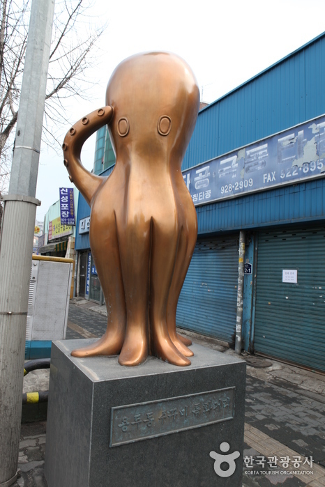 용두동 쭈꾸미 골목은 쭈꾸미 특화거리이다. 황금색 쭈꾸미 모형을 주위로 쭈꾸미 전문점들이 들어서 있다. 고추장으로 매콤하게 양념한 쭈꾸미를 철판에 익혀 먹는 용두동 쭈꾸미는 별미 중에 별미이다.