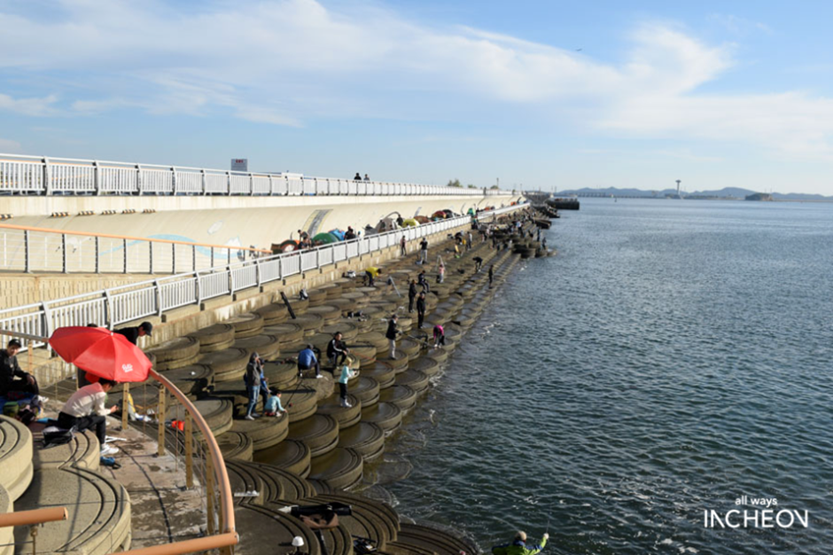 인천해양수산청이 송도 1동 988-3 일원에 신항 바다쉼터를 조성하여 2011년 6월부터 현재까지 시민들에게 개방하고 있다. 군사보호 구역임에도 인천 신항 건설과 함께 개장한 바다쉼터는 시민들이 인천항의 발전 모습과 서해의 아름다움을 보고 휴식을 취할 수 있도록 제공한 것이다. 방파제와 그 위로 조성된 산책로와 전망대가 있으며 쉼터가 마련되어 있고, 해안가 주변으로 지압판이 깔린 산책길이 조성되어 있다. 방파제 해안 산책로 하단에서는 낚시하는 사람들이 많으나 이곳은 낚시가 금지된 곳이다. 출입통제구역이라 오전 9시부터 오후 6시까지 이용할 수 있으며, 5시 10분부터는 10분 간격으로 이용을 종료하라는 방송이 나온다.