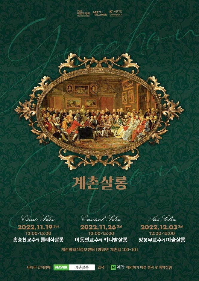 이번 <계촌살롱>은 편안한 분위기에서 클래식, 카니발, 미술에 대한 이해를 넓혀 갈 수 있는 살롱 형태의 문화예술교육이다.