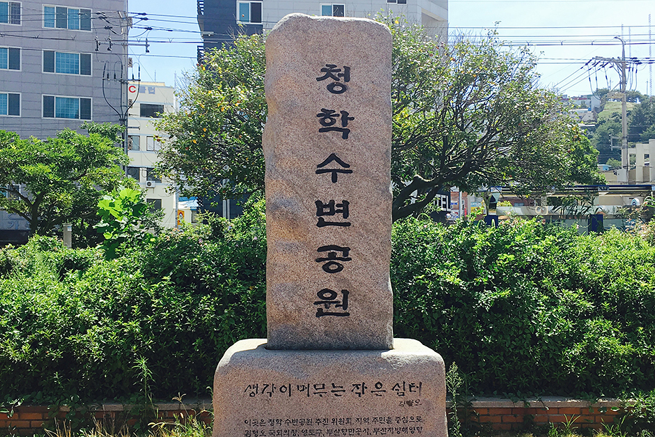 청학 수변공원은 부산 항만공사와 부산 지방해양항만청이 함께 조성한 민간 최초의 수변공원이다. 바다 가까이 있어 부산항대교를 가장 가까이서 볼 수 있는 공원으로도 유명하다. 조경은 물론이고 체육시설까지 잘 갖춘 공원으로 동해안 국토종주 자전거길에 포함되어 있어 자전거 타기에도 적합하다. 최근 야경이 아름다운 부산항대교 야경 촬영 명소로 알려지면서 영도의 새로운 관광 핫스폿으로 급부상 중이다. 부산항대교 점등시간은 일몰 후 20분부터 11시까지이니 촬영이 목적이라면 미리 점등 시간을 체크한 뒤 방문하는 것이 좋다
