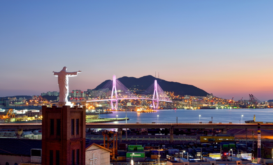 우암동 도시숲에서 내려다보는 전경은 동항성당을 배경으로 브라질 리우데자네이루 예수상 처럼 보이는 게 아주 이국적이다. 또한 도시숲에서 보는 야경은 영도 바다와 북항대교가 한 눈에 보이며, 보름달 설치물을 배경으로 야경사진을 찍으면 아름다운 실루엣 사진을 찍을 수 있고 달과 함께 찍힌 부산이 아주 매력적인 곳이다.
