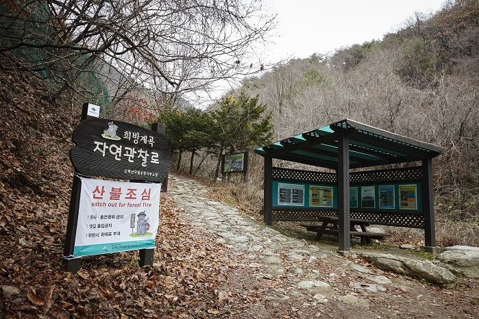 희방계곡은 경상북도 영주시의 풍기읍 수철리에 있는 계곡이다. 백두대간의 제2연화봉에서 이어진 고개가 서쪽으로는 죽령에 이르고, 동쪽으로는 소백산천문관측소에서 곰넘기재로 이어져 있다. 희방계곡은 이들 산줄기 사이에 형성되어 있으며 그 범위는 희방사역 상류 구간에 해당한다. 희방계곡은 깊은 골에서 느낄 수 있는 천혜의 비경을 자랑한다. 여름에는 시원한 피서지로 인기 있고, 가을이면 단풍과 어우러져 더욱 운치 있는 풍광을 만날 수 있다. 계곡 주변에는 푸른 숲이 우거져 있어 삼림욕을 즐기기에 안성맞춤이며, 계곡의 상류 쪽으로 올라가면 맑고 거센 물줄기가 힘차게 떨어져 내리는 희방폭포를 만날 수 있다. 이 계곡에는 일찍부터 희방사(喜方寺)가 존재해왔는데, 지명은 이 사찰의 이름에서 비롯하였다. 희방사는 643년(신라 선덕여왕 12년) 두운조사가 창건한 사찰로 경내에는 경북유형문화재 제226호인 희방사 동종이 보존되어 있다.