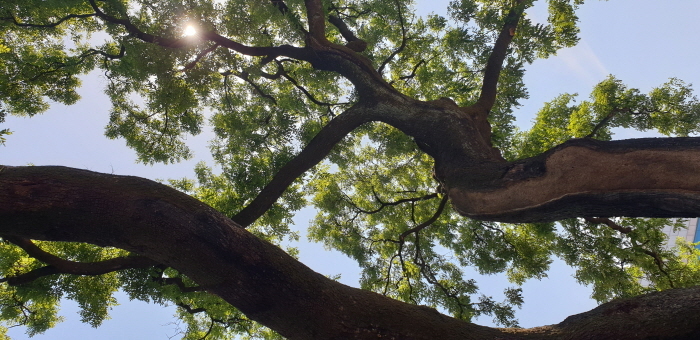 옛 선산군 청사(현 선산출장소) 정문에 큰나무 두 그루가 수문장으로 양쪽에 서 있고, 청사 뒤에도 두 그루가 서 있어 청사를 보호하고 있다. 앞에 노거수들은 수령이 약 450~500년으로 추정되며 높이도 약 20m 정도 된다. 지금 이 나무는 줄기에 주름이 많이 잡혀 있어 오랜 역사의 흐름을 말해 주는 것 같고 하늘을 꿰뚫을 것 같은 가지는 청사와 잘 조화를 이루어 선산출장소를 찾는 손님으로 하여금 엄숙하고 경건한 마음을 가지게까지 한다.