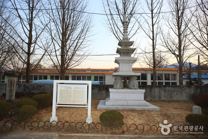 사자는 발을 가지런히 모으고 등을 맛댄 채 앞을 보고 앉아 있는 모습으로, 조각은 단순하나 각 부의 형태가 잘 드러나 있다. 탑신의 각 몸돌에는 모서리마다 기둥 모양이 표현되고 지붕돌은 네 귀퉁이에 치켜올림이 있다. 기단부에 사자상을 배치한 경우는 드문 경우로, 원형을 간직하지 못하고 있는 것이 안타깝다. 남아있는 탑재의 양식으로 보아 통일 신라 시대에 조성된 것으로 추정되며 1972년 2월 12일 유형문화재로 지정되었다.