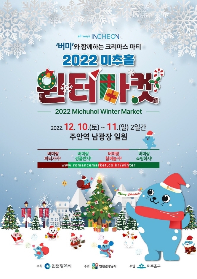 미추홀 윈터마켓은 주안역 남광장에서 개최되는 인천의 대표 크리스마스 축제로 대형 트리, 빛 터널 등 크리스마스 경관조명과 지역연계 크리스마스 마켓, 버스킹 공연, 다양한 크리스마스 체험프로그램과 이벤트 등을 만나볼 수 있는 행사이다. 주안역 남광장 일대는 12월이면 캐롤 음악이 가득하고, 첫눈이 내리면 만남의 장소로 인기가 있었던 장소로 매년 이 곳에서 열리는 미추홀 윈터마켓을 통해 따뜻한 연말 분위기를 느낄 수 있었다. 올해는 특히 귀여운 인천시 캐릭터 '버미'의 벌룬 인형 등 다양한 포토존을 마련하여 개최하며 대형 트리 등 일부 경관조명을 연말까지 연장 운영할 예정이다.
