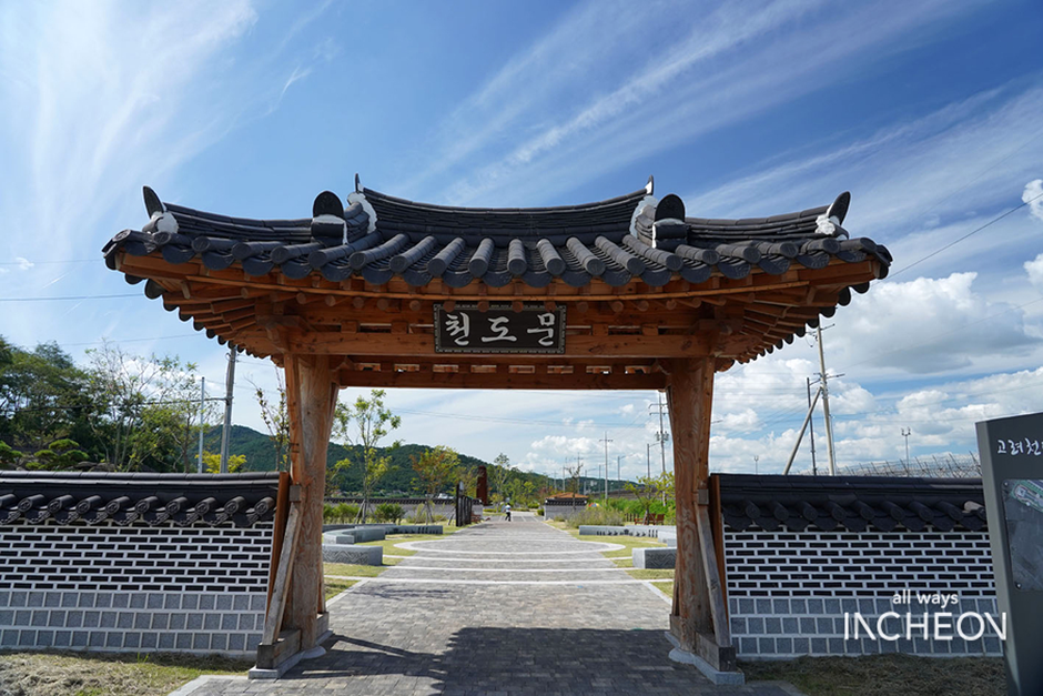 인천광역시 강화군 송해면 1만 2천㎡에 민통선 안보 관광코스 조성사업의 하나로 2019년에 개장한 역사 테마공원이다. 강화천도는 고려-몽골 전쟁 때 항전하기 위해 고려 고종이 1232년 도읍을 강화도로 옮긴 일이다. 이후 38년간 고려의 임시수도였던 강화도의 역사를 천도문을 시작으로 고종사적비까지 강화 해안가를 따라 돌아볼 수 있다. 천도문을 지나 천도문 광장에 들어서면, 고려 시대 대몽 항쟁을 위해 개경에서 강화도로 천도하던 모습을 볼 수 있다. 그 외 팔만대장경과 상정고금예문 등에 대한 자료와 강화도에 흩어져 있는 역사문화 유적지들을 소개하고 있다. 정자 및 전통연못, 폭포 등이 있어 여유롭게 산책과 휴식 하기에도 좋다. 입장료는 무료이며 이용 시간은 제한이 없다.