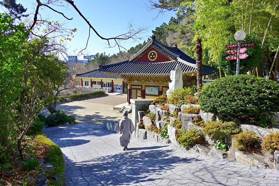 도심 안에 자리 잡은 관음사는 대한불교 조계종 송광사의 부산 분원이다. 학을 타고 있는 산이라는 뜻의 승학산에 1940년 5월 1일 승려 일련이 관음사라는 조그만 조막을 지어 수행하고 포교하면서 건립되었다. 이후 요사채를 건립하고, 법당과 후원을 짓고 도량을 넓혀, 1984년 승광사 부산 분원으로 등록하였다. 또한, 관음사는 부산광역시 문화재 자료 제60호로 지정된 『묘법연화경』을 소장하고 있다. 조선 전기인 태종 때에 판각·인쇄된 것으로 조선 전기 불경 및 서지학 연구에 중요한 자료를 제공하는 불교사적, 서지학적 가치가 뛰어난 문화재로 불교의 대표적 대승경전으로 널리 알려져 있다. (네이버 백과사전 발췌)