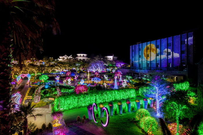 제주허브동산은 2006년 개관한 제주도 내 허브 1종 식물원이다. 2만 6000평의 대단지 농원에 150여종의 허브, 각양각색의 정원 등이 있다. 다양한 형태의 테마공원 뿐만 아니라 산책로, 허브Shop, 보타니카 카페, 황금족욕체험 시설, 귀신의 숲 등이 갖춰져 있어 연인들의 데이트 코스 및 가족 나들이 공간으로도 사랑 받고 있다. 2016년 약 500만개 이상의 조명과 3D 맵핑을 기반으로 한 멀티미디어쇼 '미디어파사드' 공연으로 새롭게 단장한 이후부터는 야간명소 관광지로도 자리매김했다. 운영시간은 오전 9시부터 오후 10시까지이며 미디어 파사드 공연은 7시, 8시 2회 진행된다 (기상악화 및 기기오류 시 예고없이 취소될 수 있음)