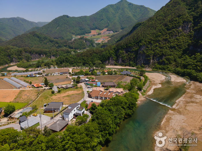 덕우리체험마을은 ‘자연에 기대어 살아가는 마을’이다. 정선 동계 12경 중 8경에 속할 만큼 자연 풍경이 빼어나다. 물 맑은 어천과 기암절벽인 석봉은 마치 신선이 사는 세계인 양한다. 그 천혜의 자연이 알음알음 소문나며 tvN <삼시세끼>, MBC <아빠 어디가?>등을 촬영했다. 영화배우 원빈과 이나영이 스몰웨딩을 올린 곳도 덕우리다. 물론 각종 촬영지 이전에 가족 단위 농촌 체험 마을로 먼저 알려졌다. 덕우리체험마을의 체험 프로그램은 야외활동체험, 공예체험, 음식체험 등으로 나뉜다. 특히 여느 농촌 마을과는 다른 톡톡 튀는 아이디어가 돋보인다. 야외활동체험은 덕우리 어천에서 이뤄지는 황금물고기 낚시, 어항체험 등과 더불어, 마그누스 효과를 이용한 종이컵비행기 만들기, 드론강사와 함께하는 드론체험이 눈길을 끈다. 음식체험은 꽃바람떡이나 도토리묵을 만드는 체험 외에, tvN <삼시세끼>처럼 맷돌로 원두를 갈고 커피를 내리는 맷돌커피 바리스타 체험, 커피로 전통 양갱을 만드는 커피양갱만들기 체험 등이 있다. 공예체험 역시 옥수수 섬유로 만든 양말에 패브릭 마카로 그림을 그려 만드는 옥수수 양말 꾸미기가 인기다. 중식을 포함한 당일 프로그램이나 1박2일, 2박3일 프로그램도 있어 하루를 묵어가며 자연과 좀 더 가까워지는 시간도 가져볼 수 있다.