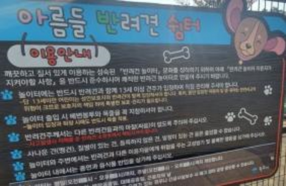 반려견 쉼터 ‘아름들’은 반려인과 반려동물의 복지 증진을 도모하고 성숙한 반려동물 문화 조성을 위해 조성됐었습니다.