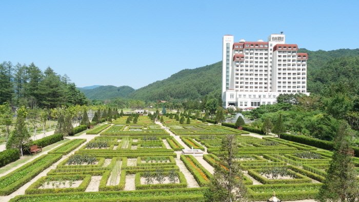 해발 700m 오대산의 빼어난 풍광을 배경 삼아 다양한 식물이 분포하고 있으며, 오리엔탈 가든, 채소 가든, 셰프의 정원 등 10개 테마정원으로 나누어져 있다.