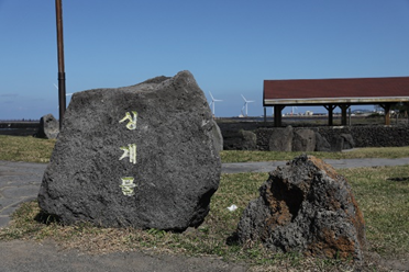 뜻의 제주 방언으로 갯물은 용천수를 의미한다. 바람이 많이 부는 이 지역 자연조건을 이용한 풍차가 넓은 바다를 수놓고 있으며 바닷가를 가로질러 등대까지 연결된 긴 다리는 수평선 풍차들과 어우러져 이국적인 정취를 보여주고 있는 지역 명소이다.