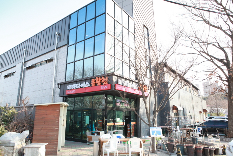 파라다이스 유황천은 경북 포항시 북구에 있다. 휴식을 원하는 현대인들의 안식처로 인기다.