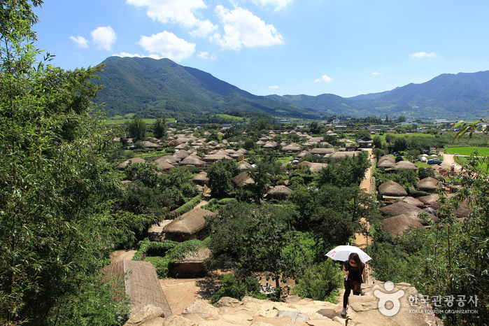 동문을 비롯 서, 남문을 통해 성 안에 들어서면 사극 촬영장이 아닌가 하는 착각에 빠져들며(사극 용의 눈물, 태조왕건 등 촬영장소) 용인, 제주민속마을과 같은 전시용이나 안동 하회마을과 같이 양반마을도 아닌, 그저 대다수의 우리 서민들이 살아왔던 옛 그대로의 모습이기에 조상들의 체취가 물씬 풍겨 친근한 정감이 넘친다. 남부 지방의 독특한 주거양식인 툇마루와 부엌, 토방, 지붕, 섬돌 위의 장독, 이웃과 이웃을 잇는 돌담은 모나지도, 높지도 않고, 담장이와 호박넝쿨이 어우러져 술래잡기하며 뛰놀던 어린시절 마음의 고향을 연상케 한다.