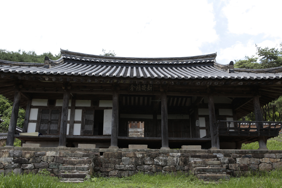 신안정사는 경남 산청군 단성면 강누리에 자리 잡고 있다. 중종 35년(1538년)에 중국 신안에 있는 주자의 사당을 본받아 창건했다. 중국 송나라 때 유학자인 주자와 우암 송시열의 영정이 봉안되어 있다. 명나라 황제 숭정제가 쓴 비례부동이라는 글씨가 있으며, 많은 서적이 있다. 부속 건물로 수정궁이 있다. 고종 9년(1872)에 중수하였으나, 영정을 모셨던 영당은 대원군 집권 시 소실되어 초석만 남아있었지만, 2006년 복원하였다.