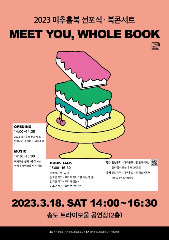 「소통과 관계회복」을 주제로 선정된 2023 미추홀북! 이를 널리 알리고 함께 즐기기 위한 선포식·북콘서트를 아래와 같이 개최하오니 시민분들의 많은 참여 바란다.