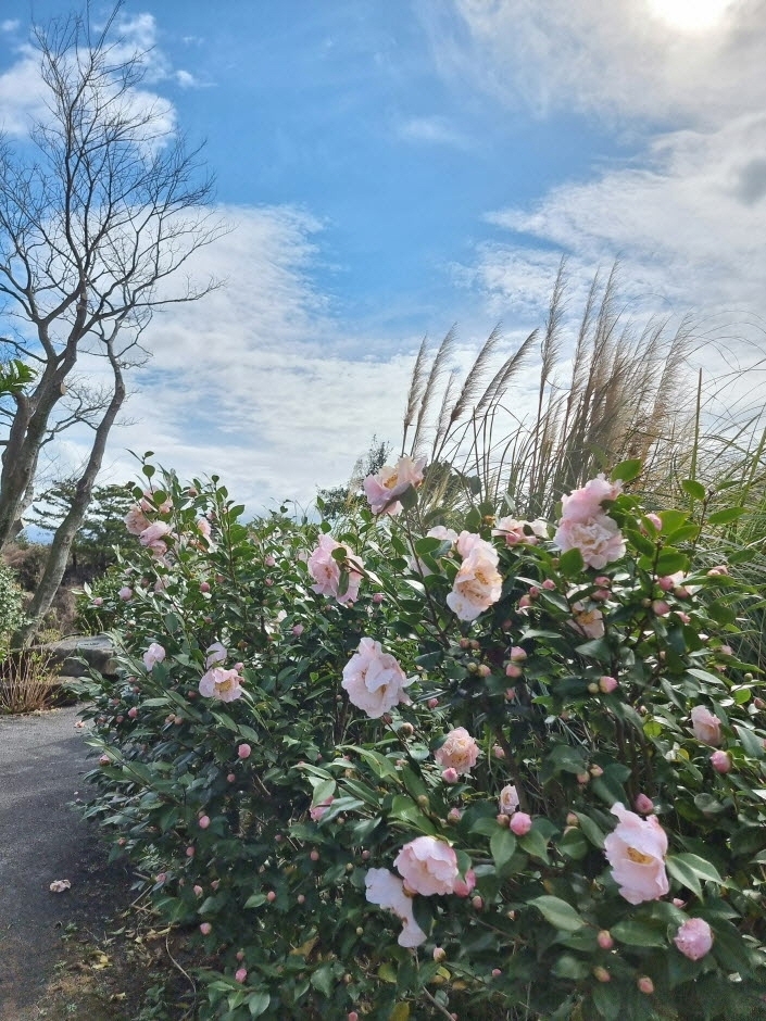 4000여 평 정원 속에 다양한 동백꽃 산책로가 있으며 산방산과 송악산 사이로 형제섬과 사계 앞바다가 보이는 환상적인 조망 또한 마노르블랑의 자랑거리이다. 환상적인 조망과 함께 봄꽃과 인생샷을 남길 수 있는 다양한 포토존이 준비되어 있고 야외 잔디정원에서는 피아노 연주 버스킹을 즐길 수 있다. 이곳 마노르블랑은 지금 프리지어, 애니시다 그리고 서향동백으로 봄에 꽃향기축제가 한창이다."