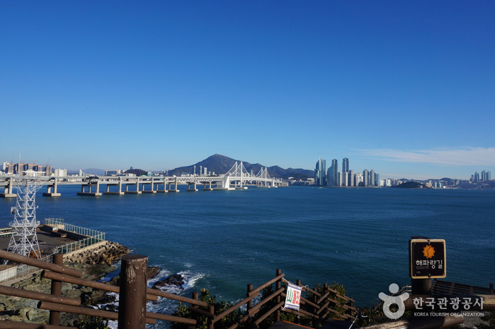 - 코스개요 : 동해와 남해의 경계지점이기도 한 이곳 승두말에 2012년 9월 12일에 착공하여 2013년 10월 18일 개장하면서 “하늘위를 걷는다”는 의미를 담아 “오륙도 스카이워크”라 이름하였다. 스카이워크는 35M 해안절벽 위에 철제빔을 설치하고 그 위에 유리판 24개를 말발굽형으로 이어놓은 15M의 유리다리이다. 바닥유리는 12mm유리판 4장에 방탄필름을 붙혀 특수 제작한 두께 55.49mm의 고하중 방탄유리로 “안전하게 설계되었다.”