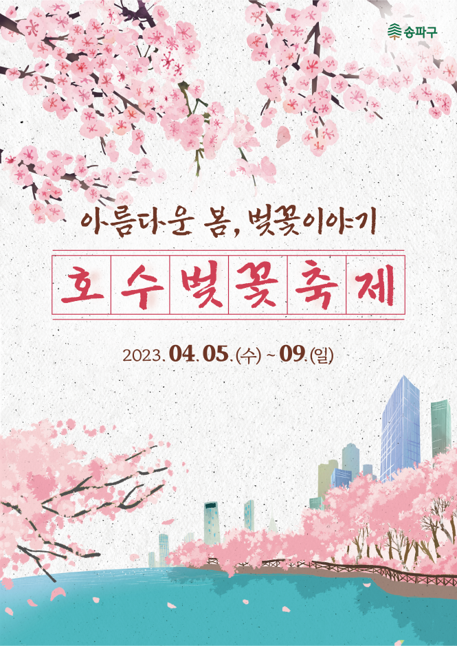 아름다운 봄, 벚꽃이야기 호수벚꽃축제'는 코로나로 인해 4년만에 열리는 벚꽃과 석촌호수의 자연환경이 어우러진 축제이다. 4월 5일 석촌호수 동호 중앙무대에서 개막식 공연과 함께 축제의 시작을 알리며, 이후로는 청년 버스킹 및 문화예술단체 등이 준비한 각종 공연이 진행된다. 또한 캐리커쳐, 페이스페인팅 등 각종 체험부스와 플리마켓이 준비되어 있어 관람객들에게 볼거리와 놀거리를 다양하게 제공한다. 올해 가족 및 친구, 연인 등과 함께 따뜻한 햇살과 만개한 벚꽃이 경관을 이루는 석촌호수에서 봄의 향연을 즐기시기 바란다.
