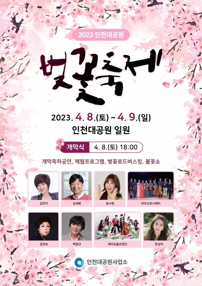 인천 최고의 FESTIVAL, 2023 인천대공원 벚꽃축제가 개최됩니다. 벚꽃과 어울리는 다양한 공연과 체험으로 시민들에게 즐거움을 선사한다.
