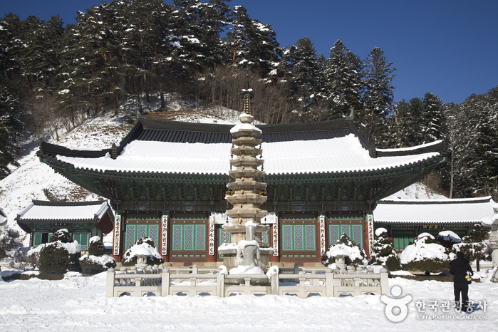 - 코스개요 : 월정사는 강원도 평창군 진부면 동산리 오대산 동쪽 계곡의 울창한 수림 속에 자리잡고 있다. 동대 만월산을 뒤로 하고, 그 만월산의 정기가 모인 곳에 고요하게 들어앉은 월정사는 사철 푸른 침엽수림에 둘러싸여 고즈넉한 아름다움을 띤다. 그 앞으로는 맑고 시린 물에서 열목어가 헤엄치는 금강연이 또한 빼어난 경관을 그리며 흐르고 있다. 월정사를 품고 있는 오대산은 자연 조건이며 풍광이 빼어날 뿐더러 예로부터 오만보살이 상주하는 불교성지로서 신성시되어 왔다.