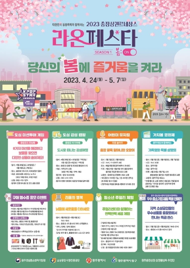충장상권 르네상스사업의 일환으로 진행되는 2023 라온페스타는 성공적으로 치러졌던 작년에 이어 두 번째로 진행되는 행사로, 충장로 상점가 소비 촉진과 상권 활성화를 위해 마련됐다.