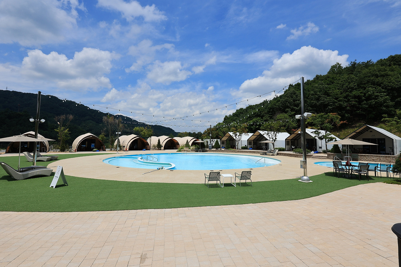 포천 화현면 포레스트힐 골프장 맞은편 언덕에 있다. 대형 야외 수영장과 노천탕, 독립된 바베큐 플레이스를 갖추고 있는 럭셔리 글램핑장으로,수영장을 중심으로 마치 커뮤니티를 형성하듯 글램핑 텐트와 카라반이 배치되어 있다.