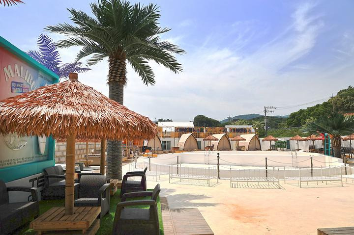 양양 서핑 핫플 인구/죽도 해변 소재, 글램핑장/게스트하우스형 텐트/공연장/수영장/음식점/서핑샵을 갖춘 여름 휴양 시설