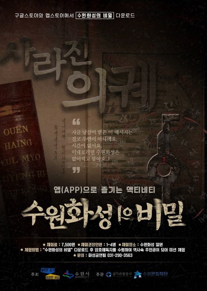 스마트폰으로 수원화성 일원에서 진행하는 방탈출 게임 형식의 콘텐츠로 증강현실 등 다양한 정보통신기술과 역사를 직접 체험할 수 있는 관광 콘텐츠