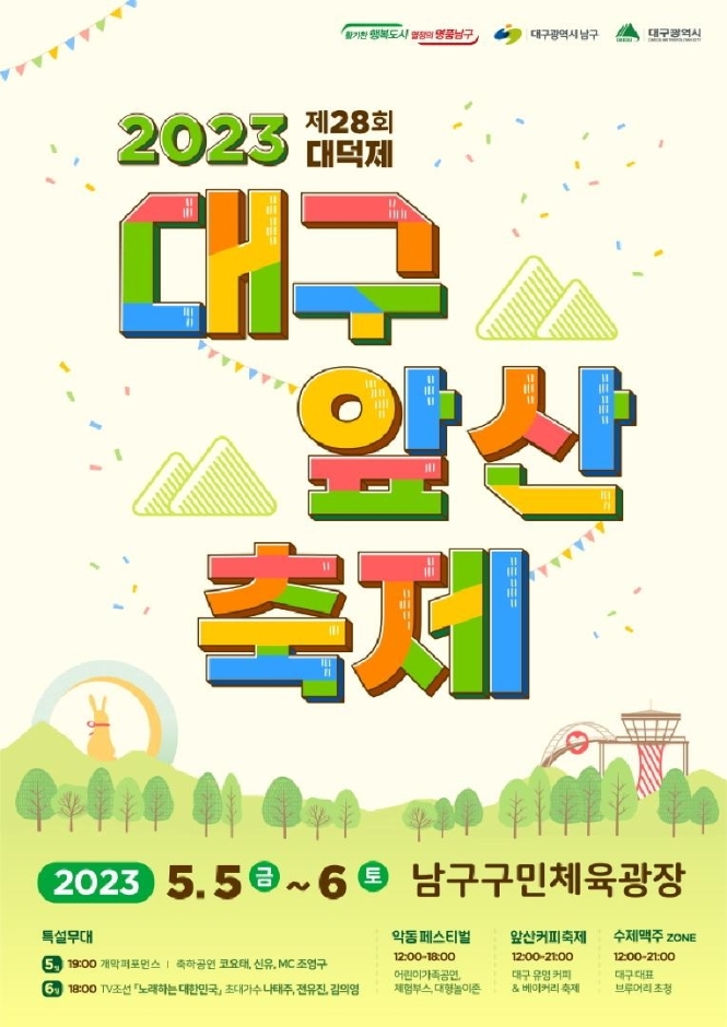 1987년 4월 11일부터 전국 구 단위 축제로는 처음으로 개최되어, 오랜 역사와 전통을 자랑하는 대구의 대표적인 지역축제로 자리 잡은 대덕제가 제27회 대덕제부터는 기존의 '앞산 빨래터 축제'에서 '대구 앞산 축제'로 이름을 바꿔 개최되었으며, 특히 2023년에는 남구 구민체육광장으로 자리를 옮겨 더욱 화려해진 무대와 다양한 프로그램으로 펼쳐진다.