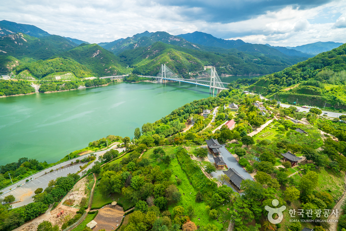위치하고 주변에 구담봉, 옥순봉을 볼 수 있는 충주호, 사인암, 두악산, 도락산,