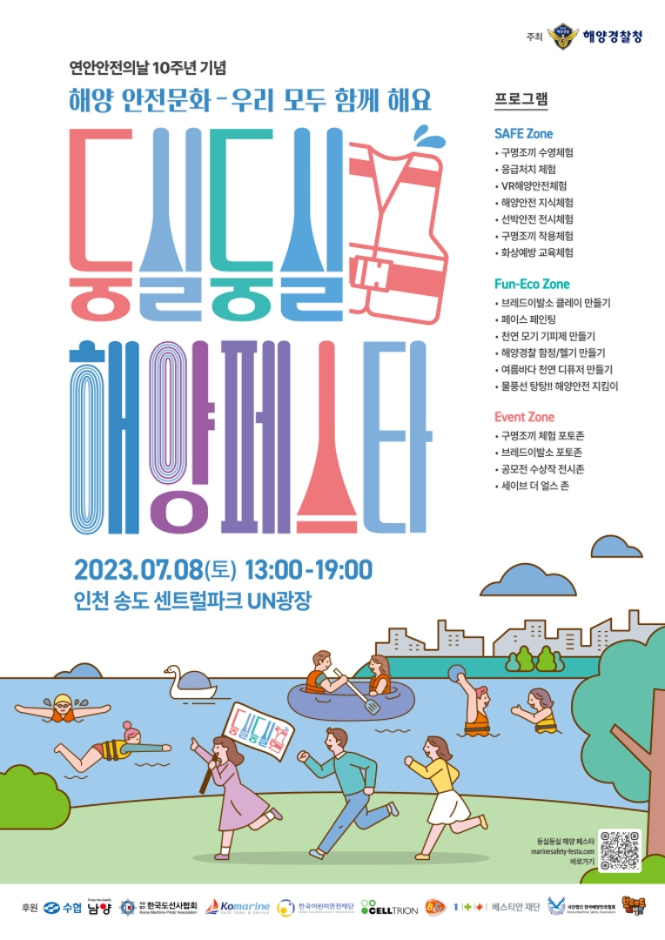 해양경찰 연안안전의 날 10주년 기념으로 열리는 ‘2023 둥실둥실해양페스타’가 인천 송도 센트럴 파크 UN광장에서 펼쳐진다.