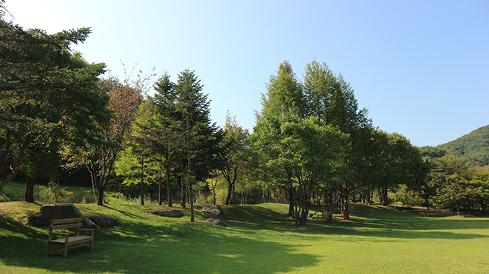 편평한 광장과는 차별을 두어 완만한 둔덕에 사시사철 푸른 잔디가 펼쳐져 있다. 4,958m²(1,500여 평)의 넓은 광장 중앙에는 두 그루의 큰 신나무가 있어 잔디 광장에 그늘을 더하며 더욱 마음에 안정감과 여유로움을 느끼게 해준다.