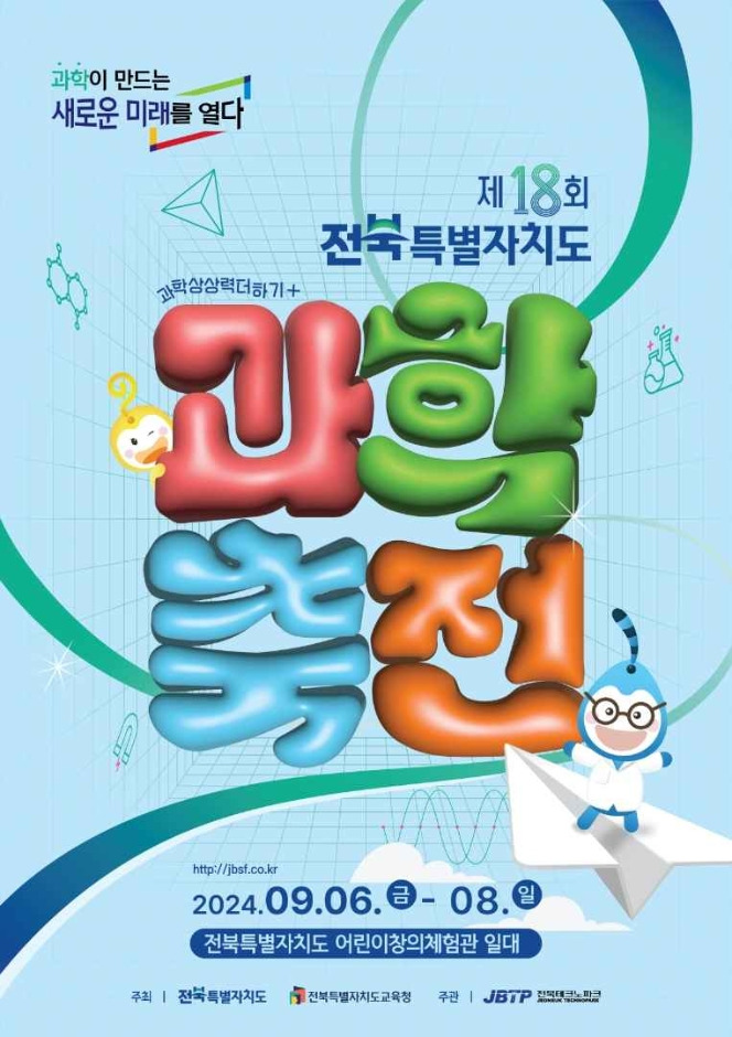 새로운 전북특별자치도와 함께 더 특별해진 제18회 전북특별자치도 과학축전은 ‘과학이 만드는 미래를 상상하다’라는 컨셉으로 76개의 체험부스와 5개의 전시부스 운영으로 프로그램을 구성하였다.