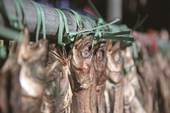 고성에는 말린 명태, 즉 북어를 만드는 명태덕장이 여럿이다. 바닷가나 낮은 산자락에 덕장을 만들어 명태를 말린다.