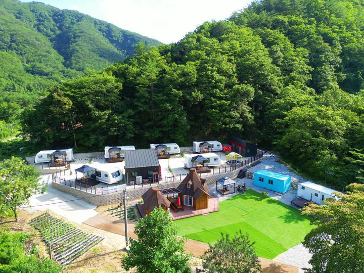하늘아래 첫동네 부연동 마을에 위치한 맑은 공기와 사계절이 뚜렷한 자연경관과 자연의 소리가 함께 느껴지는 힐링 카라반입니다.