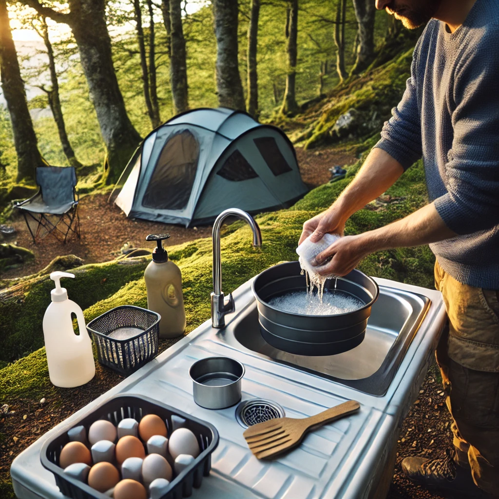 캠핑장에서 설거지를 하거나 씻을 때 일반 세제를 사용하면, 물에 녹아 자연으로 흘러가면서 하천과 토양을 오염시킬 수 있습니다.