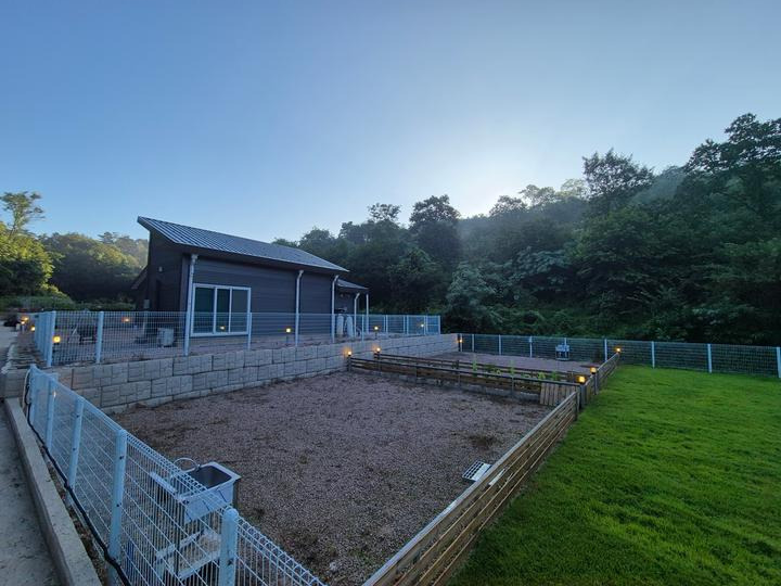 반려견 동반 소규모 캠핑장입니다. 파쇄석으로 4개 사이트 잔디 운동장있습니다. 그리고 농촌체험 가능한 텃밭 있습니다.