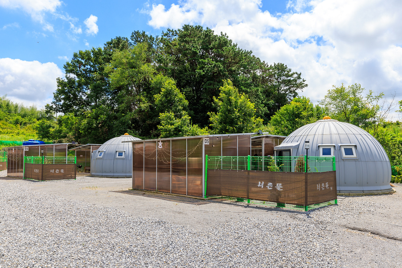 사계절 온수 수영장이 돋보이는 캠핑장 너른뜰은 충남 부여군 세도면에 자리 잡고 있다. 캠핑장에는 돔형 글램핑 5개 동이 마련되어 있으며, 일상생활이 가능할 정도로 꾸며져 있어 불편함이 없다. 개별 화장실과 개수대를 갖춘 오토캠핑 사이트 6면도 함께 운영 중이다. 바닥은 파쇄석으로 이루어졌으며, 크기는 가로 10m × 세로 10m로 널찍하다. 사계절 내내 운영되는 온수 수영장을 비롯해 트램펄린, 매점 등 부대시설도 알차다. 주변에는 부여 성흥산성, 백제문화단지 등 부여의 유명 관광지가 많다.