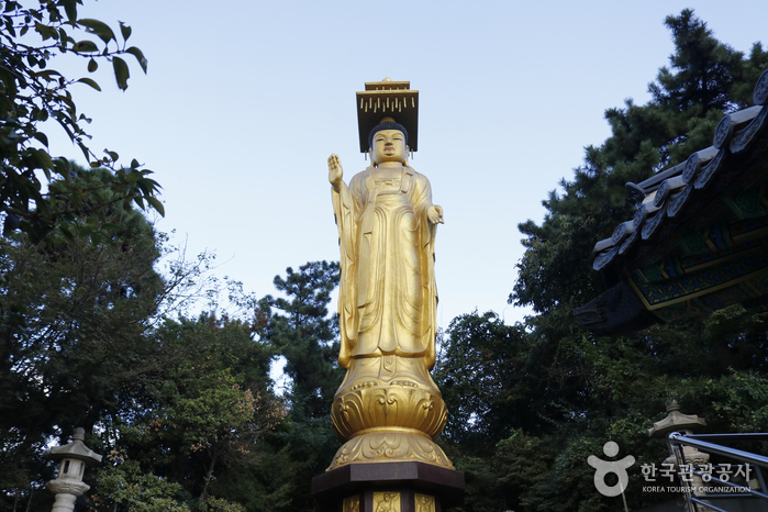 사찰 뒤로 석바위 공원이 있어 도심 주택가에 위치하고 있지만 산중 사찰과 같은 자연환경을 품고 있다. 대웅전으로 올라가는 계단에 황금 동상으로 된 미륵존 여래불이 있다.