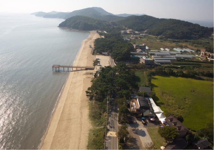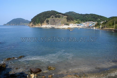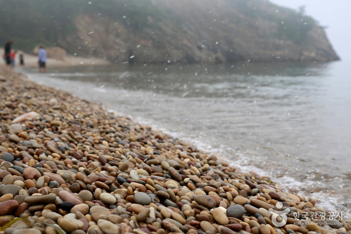 - 조그만 콩 크기의 조약돌이 해안에 지천으로 깔려있는 이색적인 모습의 해변이다.