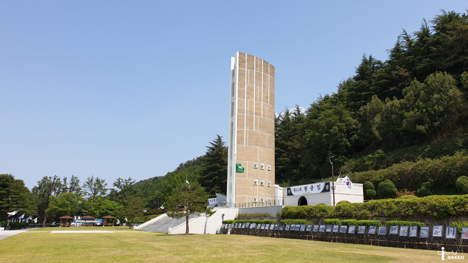 충혼탑은 한국전쟁 당시 조국 수호를 위해 산화한 대구 출신 호국영령의 영현을 모신 공간이다. 탑은 원래 1958년 5월 대구 수성구 두산동 수성못 옆에 건립했다. 하지만 규모가 작고 장소가 부적합하여 1971년 4월 대덕산 기슭에 탑신 30m, 둘레 9m인 충혼탑을 재 건립하게 되었다. 이후 2017년 6월 리모델링 공사로 기존 충혼탑 내 낡고 좁은 위패 봉안실을 충혼탑의 좌우에 석재로 신축하여 장중한 추모공간으로 새롭게 단장하였다.