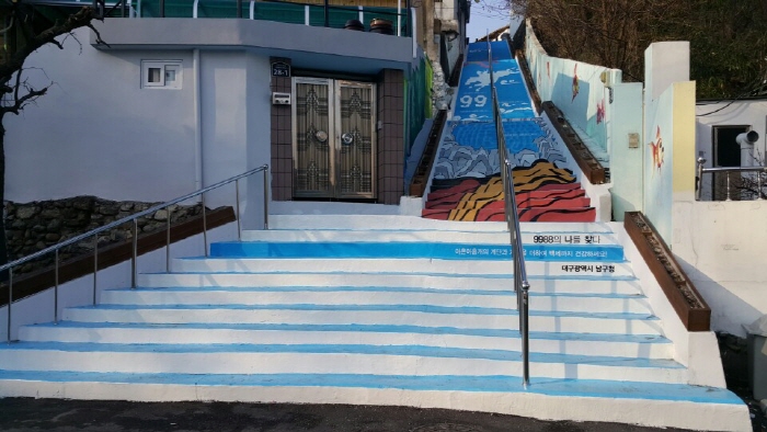 이곳은 서울의 인사동 거리처럼 고미술거리로 널리 알려진 대구 남구 이천동 고미술 거리 건너편으로, 전통사찰인 서봉사가 있고 그 아래 나지막하면서 오래된 한옥이 밀집해 있는 수도산 자락에 있다. 어둡고 칙칙한 시멘트 담장만 있던 골목 99계단에 99세까지 88하게라는 타이틀의 벽화를 조성하여 밝고 아름다운 벽화 골목으로 조성했기 때문에 더욱 의미가 있는 곳이다.