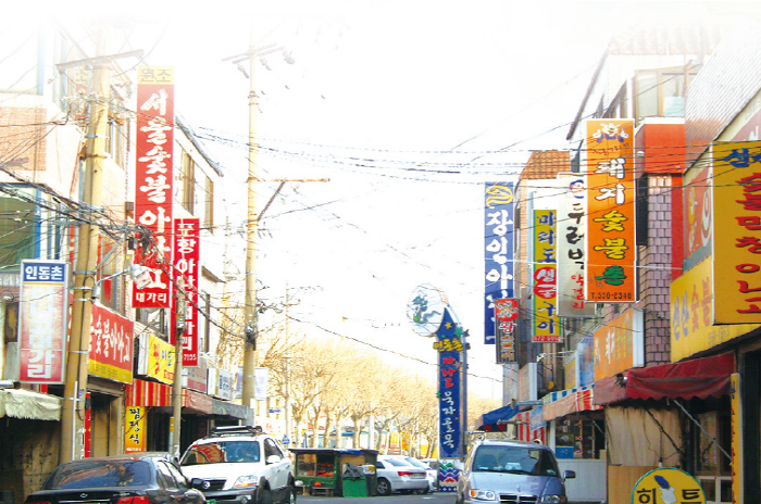 대구에는 안지랑만큼 유명한 중리동이 있다. 모두 대구가 품은 곱창 골목이다. 안지랑이 돼지 곱창과 막창이 주력이라면 서구의 중리동은 소곱창이 주력 메뉴인 것이 다른점이다. 중리동 곱창골목의 역사는 30여 년 전으로 거슬러 올라간다. 지금의 아울렛 자리에 도축장이 들어서면서 주변에 식육식당과 부속물을 파는 포장마차가 생긴게 시작이었다. 2001년 검단동으로 도축장은 옮겨갔지만 곱창 전문점들은 여전히 자리를 지킨다. 소 대창과 곱창은 물론 주먹시 같은 특수 부위까지 맛볼 수 있는 맛골목이다.