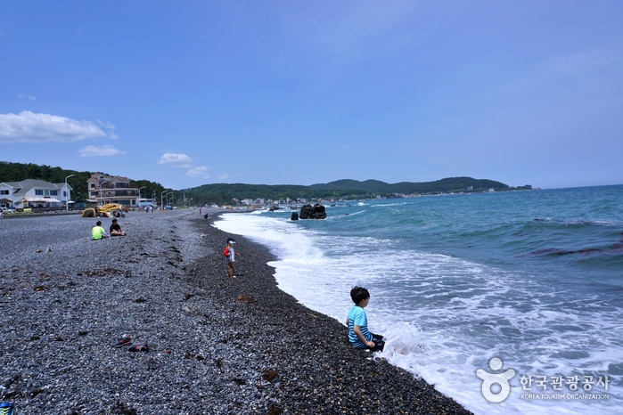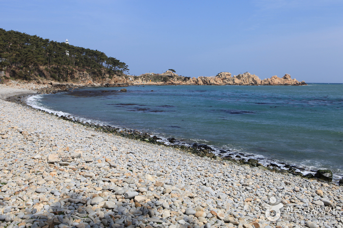 송림을 벗어나면 탁 트인 해안 절벽이다. 마치 선사 시대의 공룡화석들이 푸른 바닷물에 엎드려 있는 듯한 착각을 불러일으킬 정도로 거대한 바위덩어리들이 뭉쳐 있다.