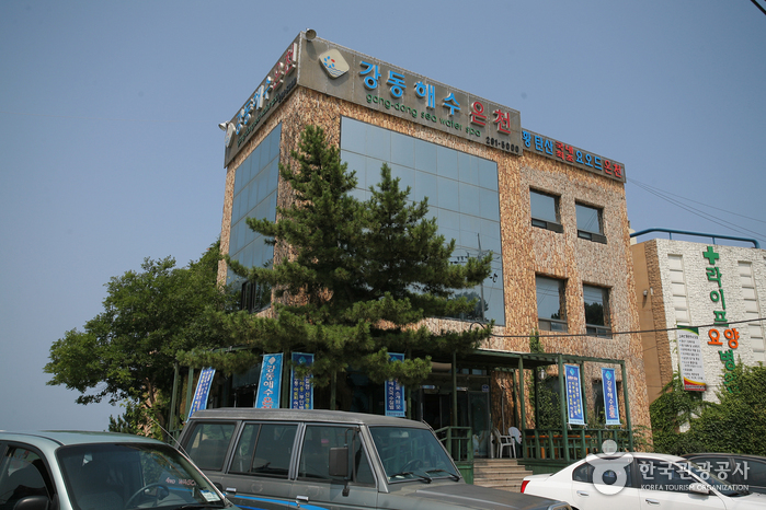 강동 해수온천은 국내 최초의 현대화된 최첨단 시설로 울산 유일의 청정해역, 정자 앞바다 자연 바닷물을 그대로 침전 시켜 100\'C 이상 끓여 공급하기 때문에 염도가 높고 살균효과가 뛰어나다. 해수탕에 들어가기 전 반드시 먼저 샤워를 하고 청맥반석, 한방안개(사우나)탕이나 핀란드식 건식사우나에서 충분히 몸을 따뜻하게 한 다음 해수탕에 들어가야한다. 해수탕에서는 약 5 - 15분 정도 몸을 완전히 담그고 2회 정도 반복하면 체내의 노폐물이 완전히 제거된다. 국내 최초의 요오드 온천이다.