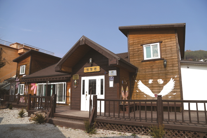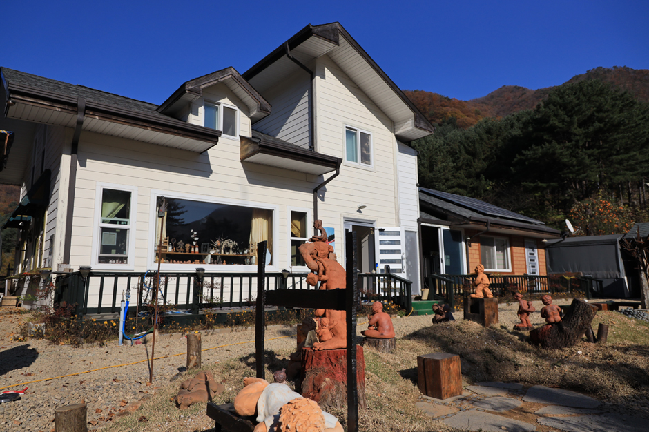 조형스튜디오는 산촌생태마을 체험관인 숲속학교 아래 계곡에 걸쳐 있는 작은 다리하나를 건너면 바로 오른쪽에 위치하고 있다. 하얀색의 외관과 잔디밭이 멀리서도 눈에 띄는 조형스튜디오는 입구부터 눈을 즐겁게 한다. 마당 가득 작가의 테라코타 작품들이 전시되어 있다. 우리나라를 대표하는 흙공예작가 김명희 선생의 작업공간이자 전시공간인 김명희 조형 스튜디오이다. 김명희 선생은 중국 민간공예 특급대사 ‘위청청’선생에게 사사한 한국 유일의 제자로 흙 공예 특히 흙으로 인형을 만드는 분야에서는 국내외에서 명성이 자자하다.