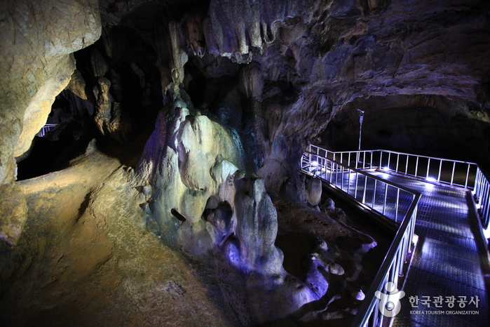 온달산성이 있는 성산 기슭 지하에서 약 4억 5,000만 년 전부터 생성되어 온 것으로 추정e되는 석회암 천연동굴고 굴과 지굴의 길이가 760m, 입구높이 약 2m이며, 면적은 34만 9485㎡이다. 동굴의 존재는 신증동국여지승람 제 14권 충청도 영춘현 고적조에 기록되어 있으며 1966년부터 학술조사가 시행되어 1975년 잠시 공개하였으나, 지리적 여건으로 폐쇄되었다가 대대적인 개발을 통해 1997년부터 다시 일반인에게 개방되었다. 아직 전혀 훼손되지 않은 태고적 모습을 그대로 간직하고 있다.